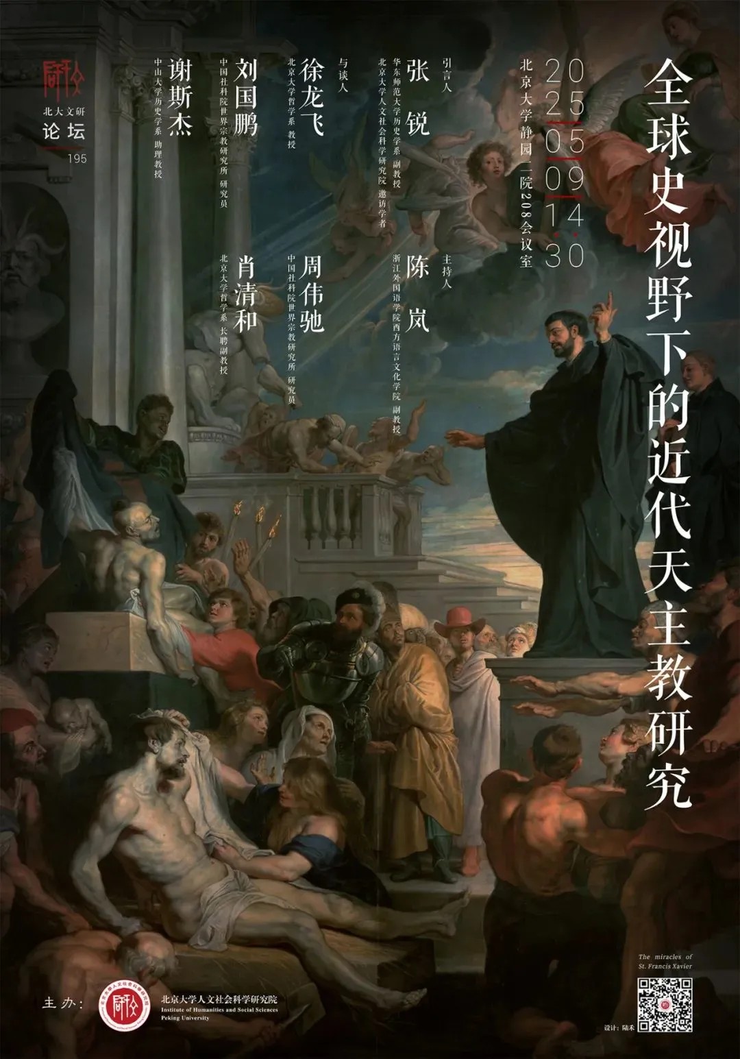 2025年5月9日下午,“文研论坛”第195期在北京大学静园二院208会议室举行,主题为“全球史视野下的近代天主教研究”。本次论坛引言人为华东师范大学历史学系副教授、北京大学人文社会科学研究院邀访学者张锐,主持人为浙江外国语学院西方语言文化学院副教授陈岚,与谈人有北京大学哲学系教授徐龙飞、中国社会科学院世界宗教研究所研究员周伟驰、中国社会科学院世界宗教研究所研究员刘国鹏、北京大学哲学系长聘副教授肖清和、中山大学历史学系助理教授谢斯杰。