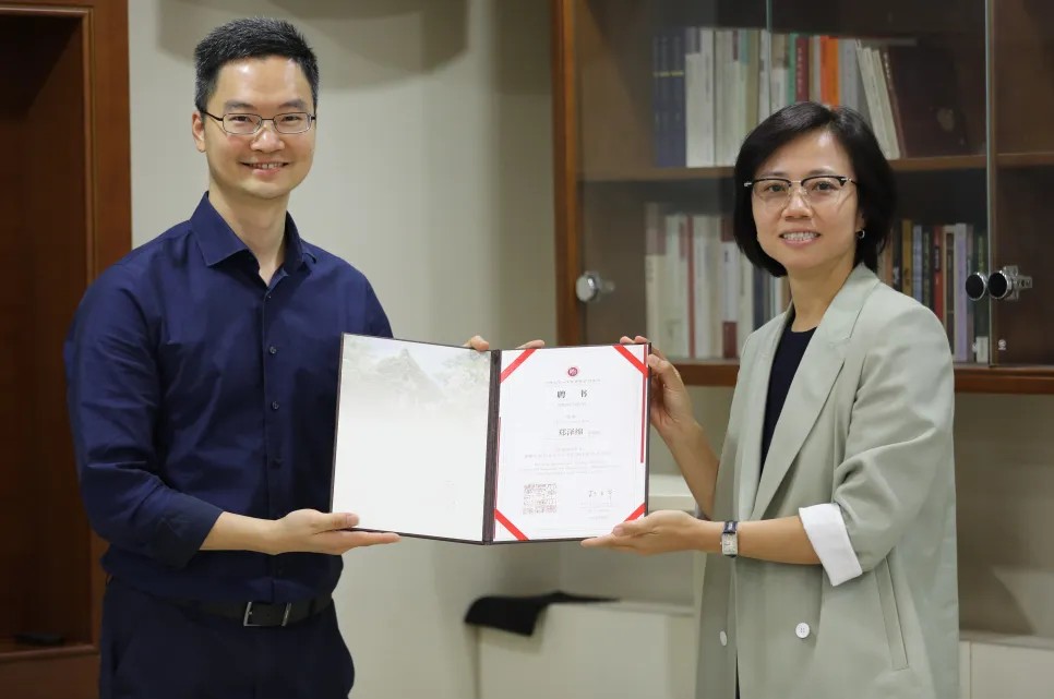 杨弘博副院长为郑泽绵老师颁发邀访学者聘书