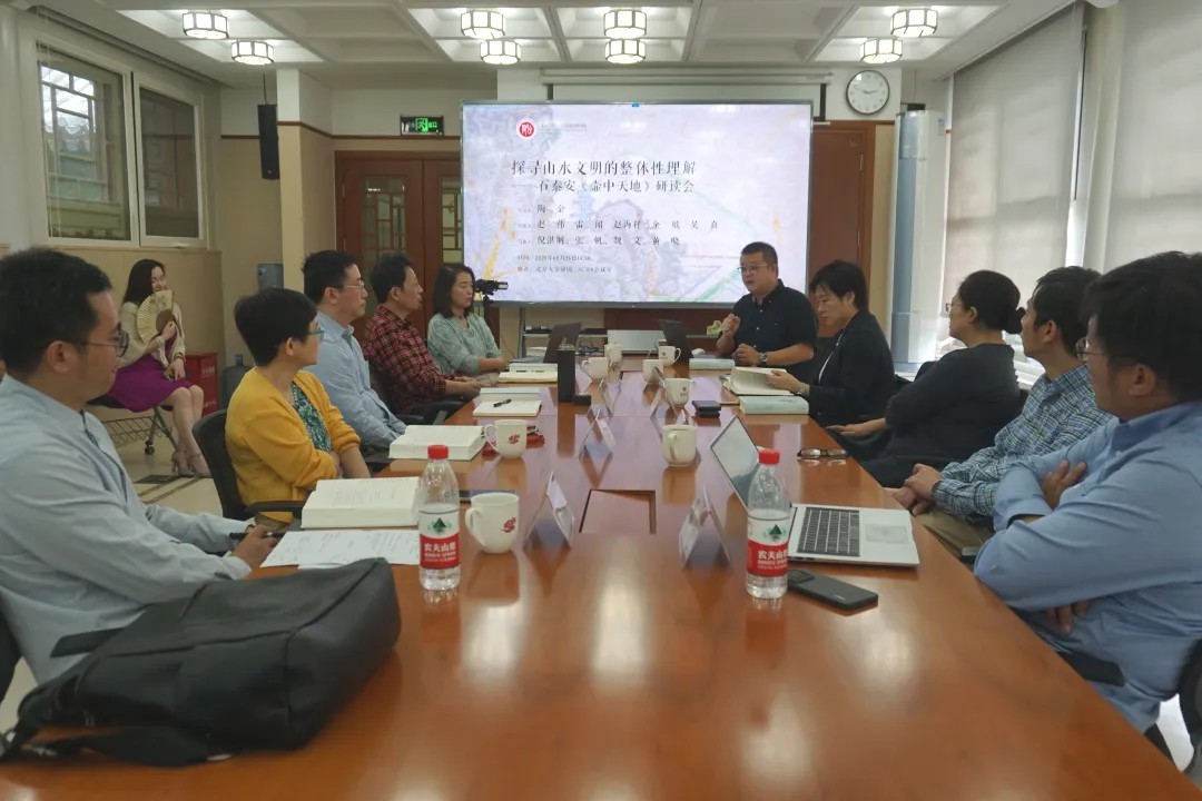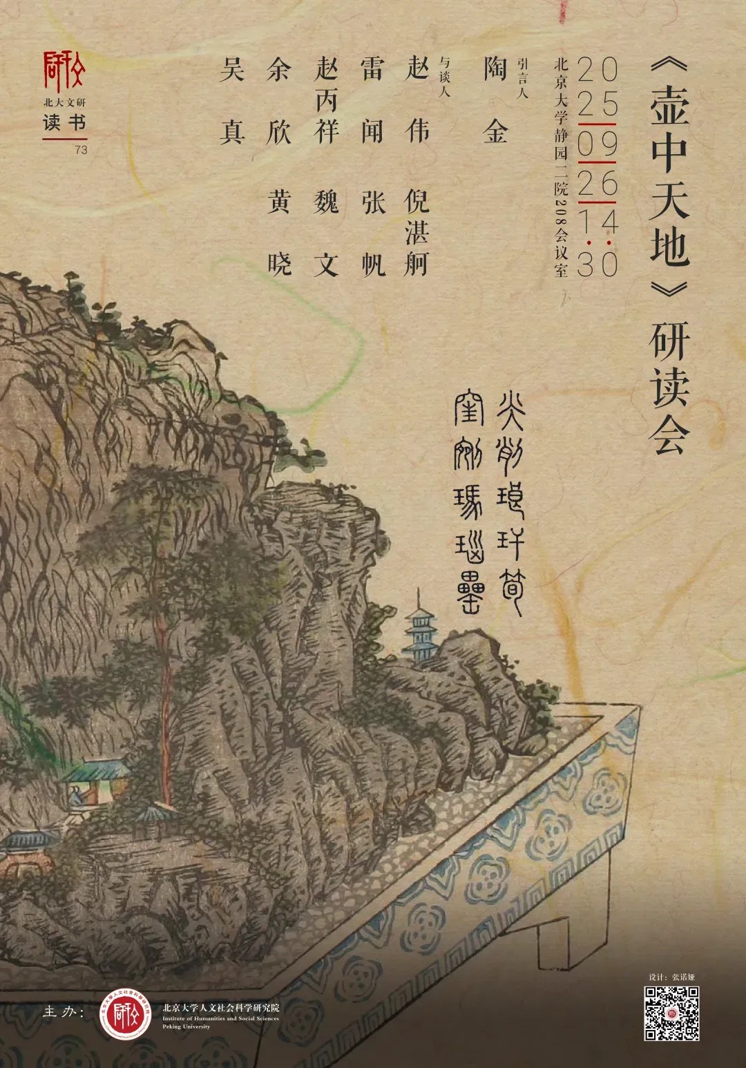 2025年9月26日下午,“文研读书”第73期“探寻山水文明的整体性理解——石泰安《壶中天地》研读会”在北京大学静园二院208会议室举行。座谈会由《壶中天地:远东人文思想中的盆景与民居》的翻译者、清华大学建筑设计研究院项目负责人陶金作引言,中央美术学院人文学院教授赵伟、北京师范大学历史学院教授雷闻、中国农业大学人文与发展学院教授赵丙祥、浙江大学古籍所教授余欣、中国人民大学文学院教授吴真、弗吉尼亚理工大学宗教与文化系教授倪湛舸、北京大学社会学系长聘副教授张帆、中国藏学研究中心历史研究所副研究员魏文、北京林业大学园林学院副教授黄晓与谈。