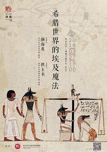 2019年3月27日晚,“北大文研讲座”第一百一十六期在北京大学第二体育馆B102报告厅举行,主题为“希腊世界的埃及魔法”。北京大学历史学系教授颜海英主讲,北京大学外国语学院教授拱玉书主持。