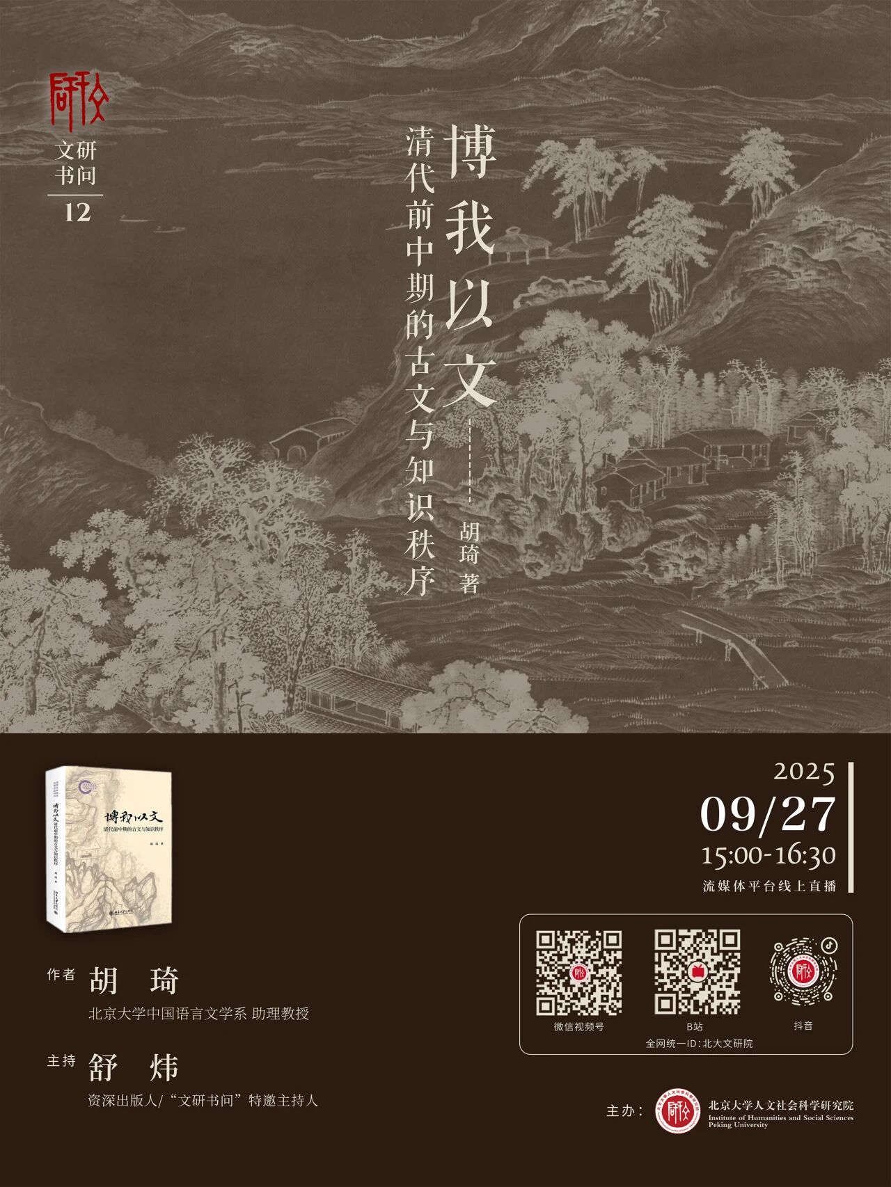 我们将通过文研院视频号、b站、抖音平台,对本场活动进行线上直播。线上观众应尊重北大文研院及演讲人对本场活动音像内容拥有的版权,请勿录音、录屏或以任何形式在未经许可的媒介传播,侵权必究。