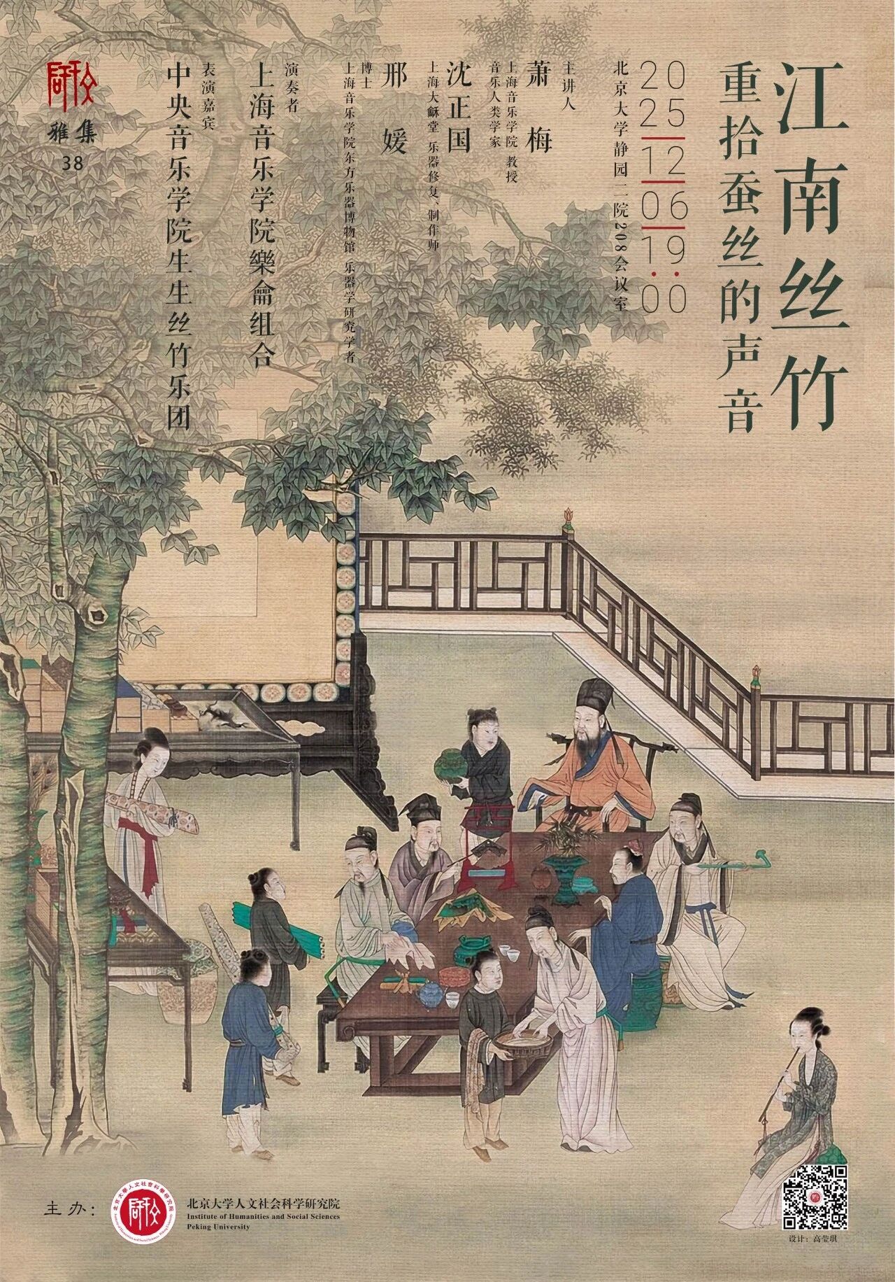 本次静园雅集,将以上海音乐学院萧梅教授领衔的“重拾蚕丝的声音”项目为核心,通过江南丝竹示范演奏与学术讲解,在一场乐器学、音乐人类学与活态传承实践相融合的历史考掘中,体验遗产复兴的深意。