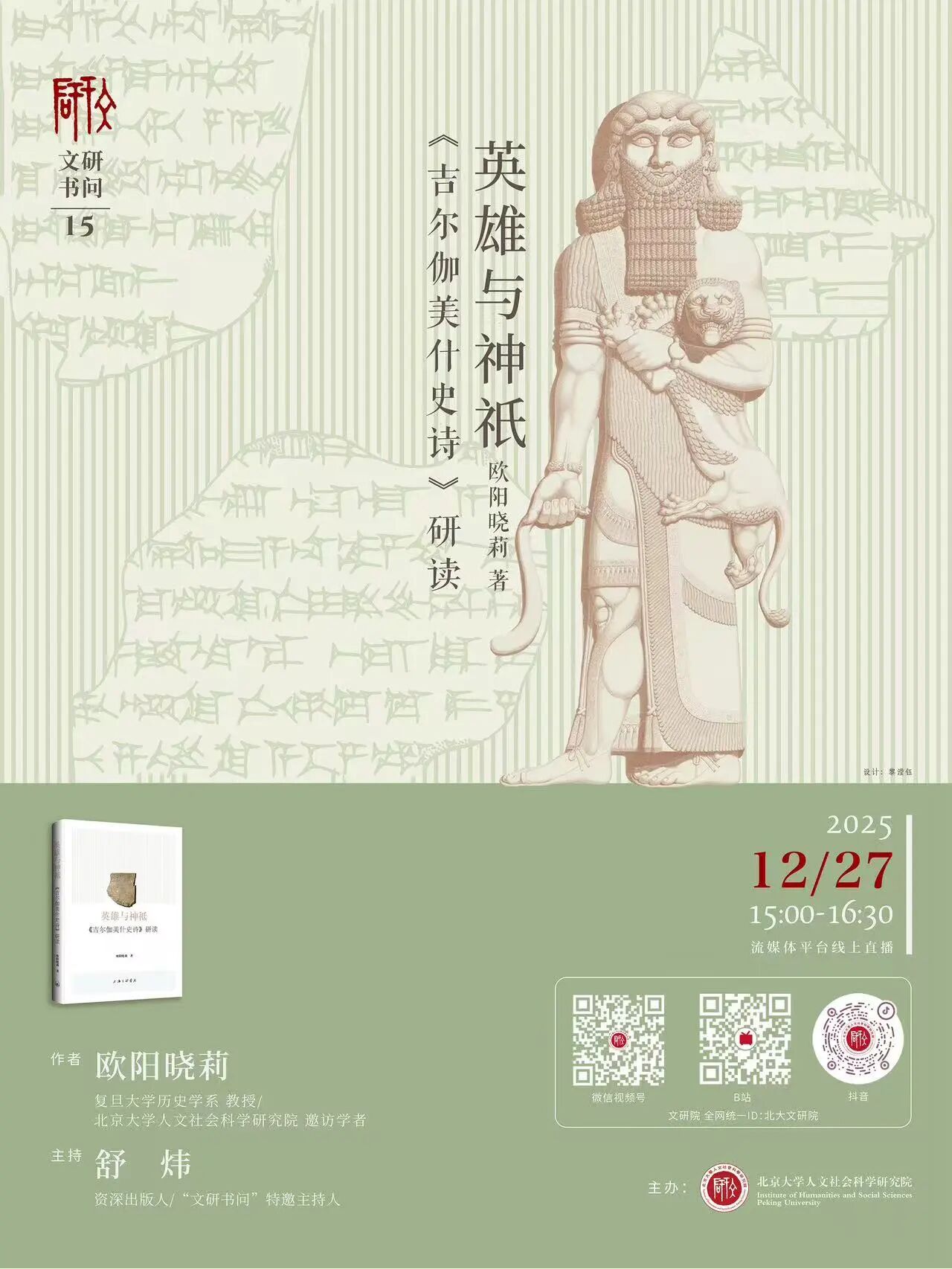 我们将通过文研院视频号、b站平台,对本场活动进行线上直播。线上观众应尊重北大文研院及演讲人对本场活动音像内容拥有的版权,请勿录音、录屏或以任何形式在未经许可的媒介传播,侵权必究。